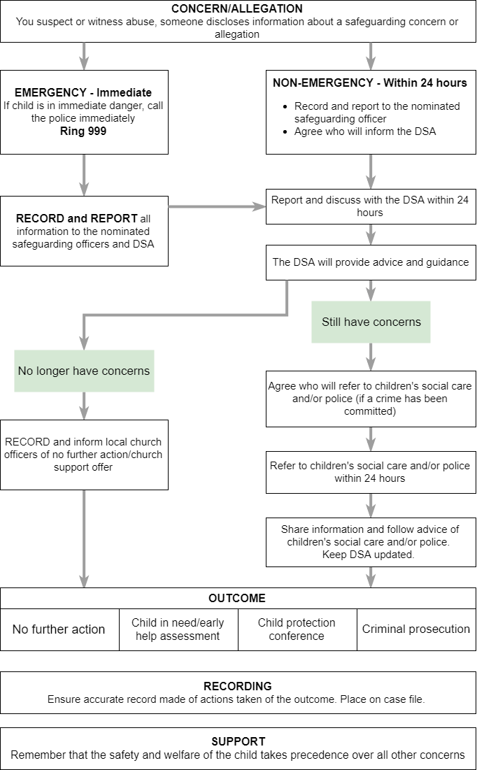 - Reporting procedures to the Church’s nominated safeguarding professionals, who are able to offer advice and decide upon the necessity for a referral to children/adult social care and/or the police [4] ;