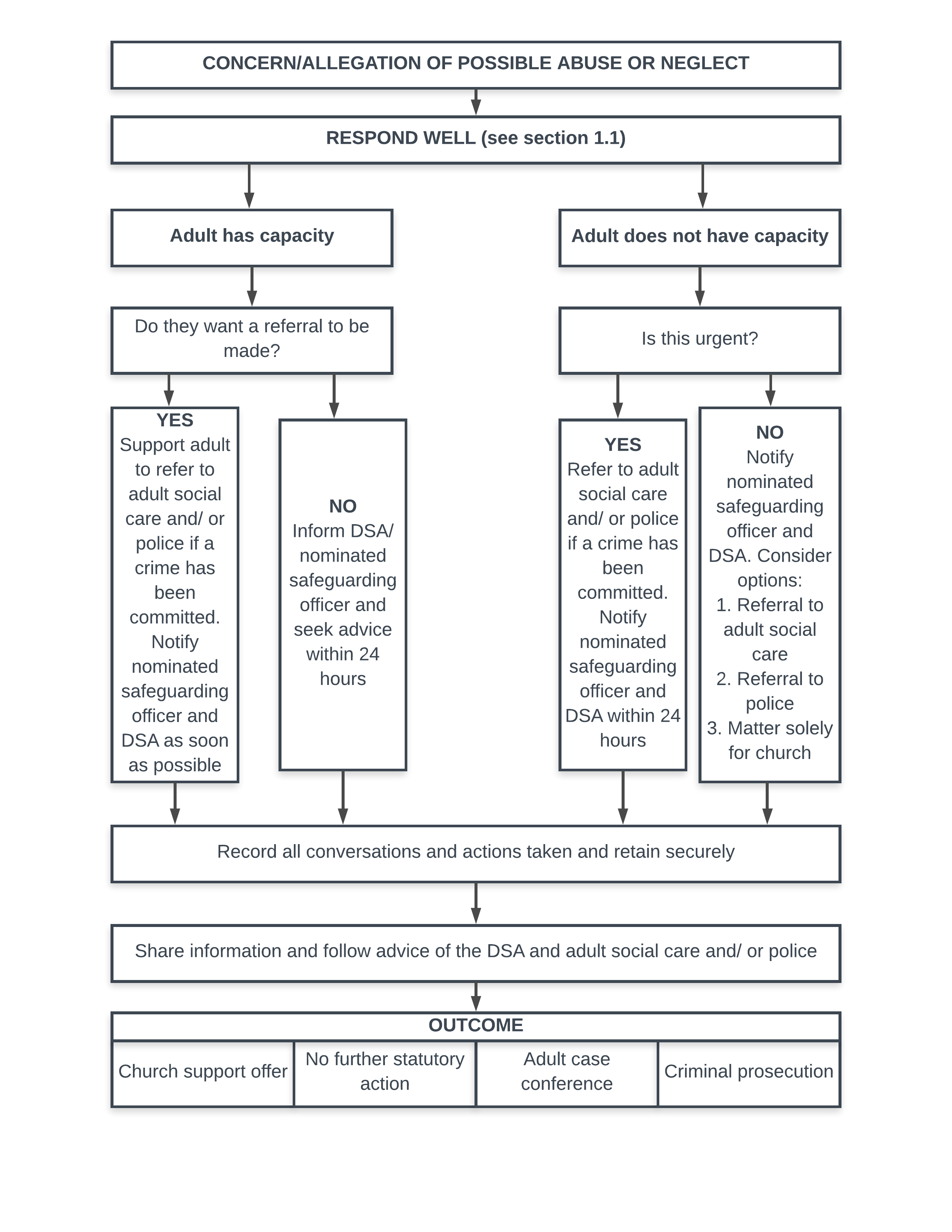 This guidance aims to offer the Church procedures for dealing with concerns or allegations against children, young people and adults, which are compliant with local safeguarding children’s and adults’ procedures. It offers guidance on: